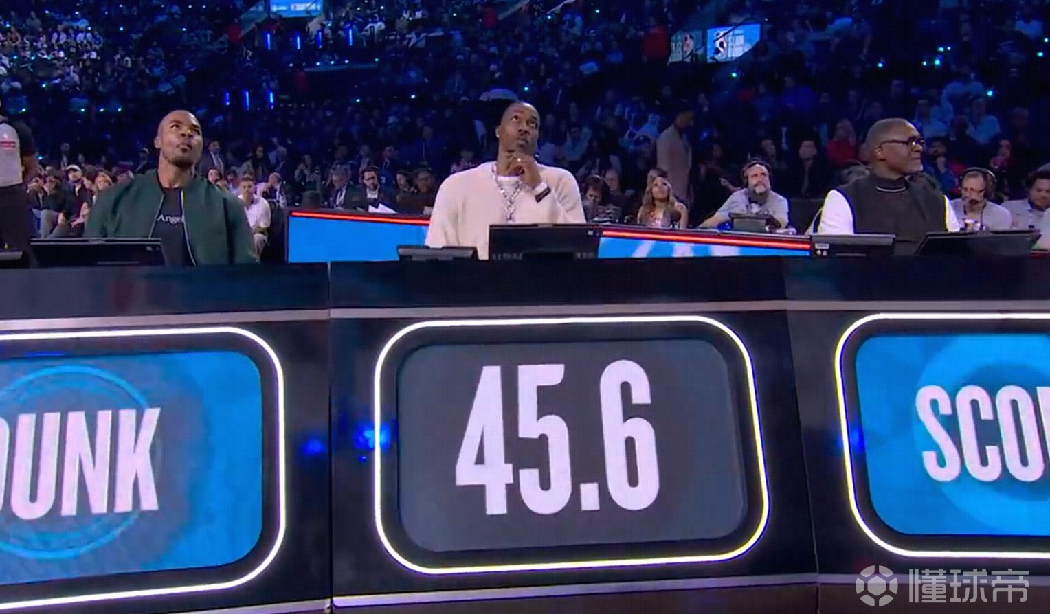 第一位登场的为马刺新秀卡特-布莱恩特,他奉献一记360度大风车扣篮,得到45.6分。